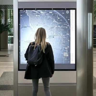 • Écran standard LCD, vitrine, à encre électronique, mur LED, surface totem, borne pupitre